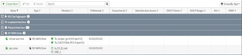 Network 🡪 Interfaces show SD-WAN zones and its SD-WAN members