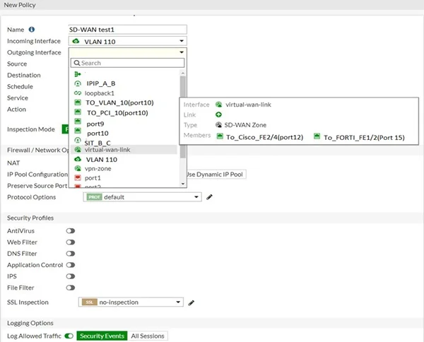 Step 3: Choose SD-WAN zone for incoming and outgoing interface and configure policy settings as required